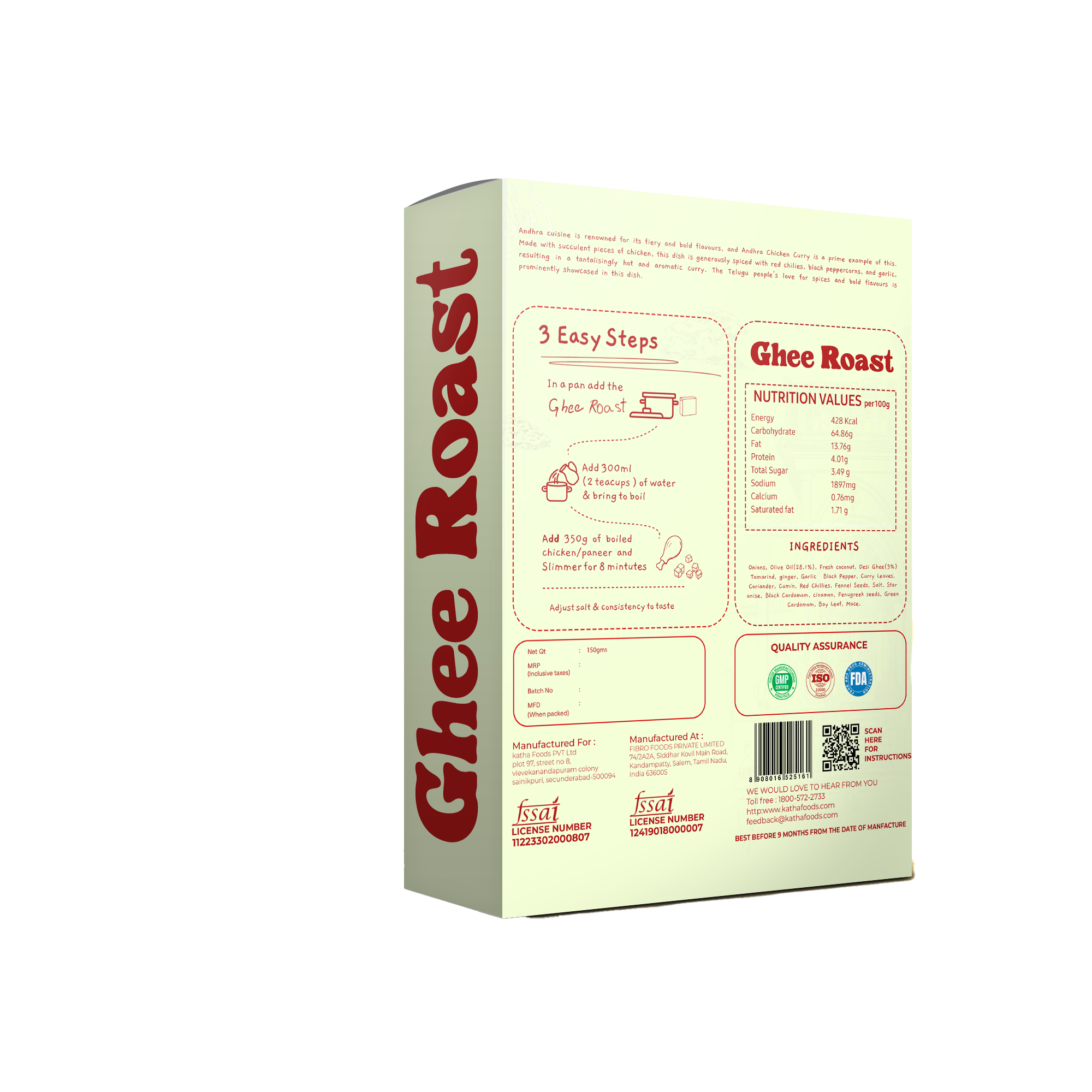 Onion, Groundnut Oil, Cashew Nuts, Curry Leaves, Ginger, Garlic, Green Chilli, Coriander Seeds, Red Chilli Powder, Desi Ghee(2%), Poppy Seeds, Whole Red Chilli, Black Pepper, Cumin, Turmeric, Cinnamon, Green Cardamom, Cloves, Star Anise, Nutmeg.